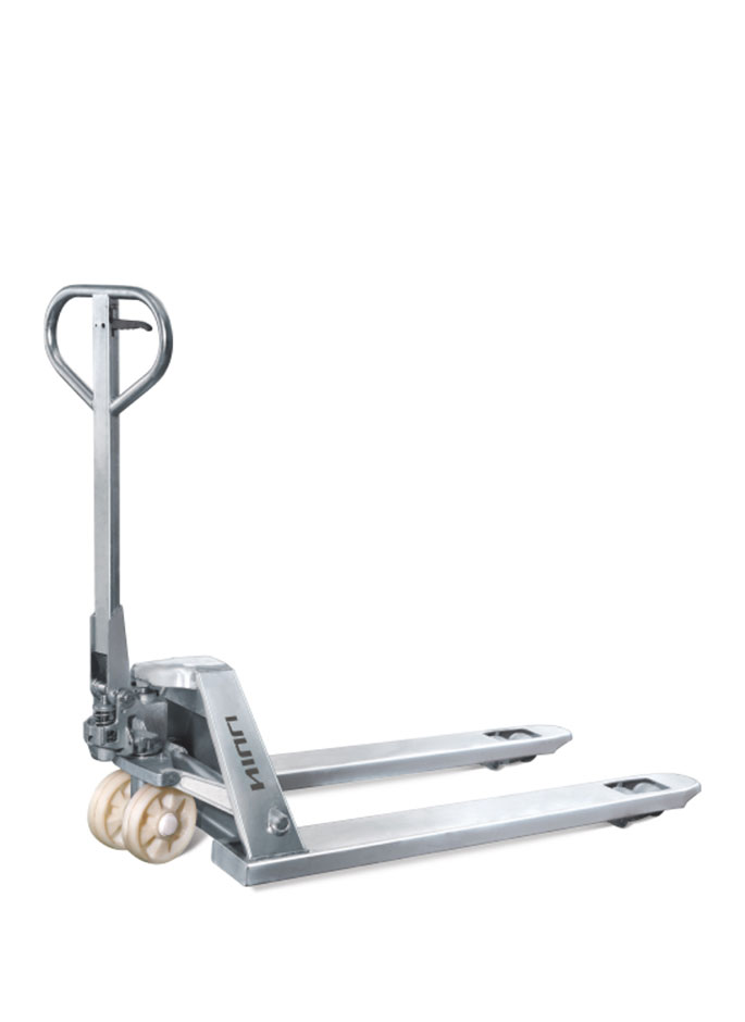 除了輪子和密封件以外所有零部件均由不銹鋼制作,如油缸、車架、手柄、推桿、軸承、插銷等;具有很強(qiáng)的抗腐蝕能力,適用于冷庫及潔凈度、抗腐蝕性要求比較高的場所,如肉類加工、奶制品加工、食品加工、 水產(chǎn)品加工等行業(yè)。